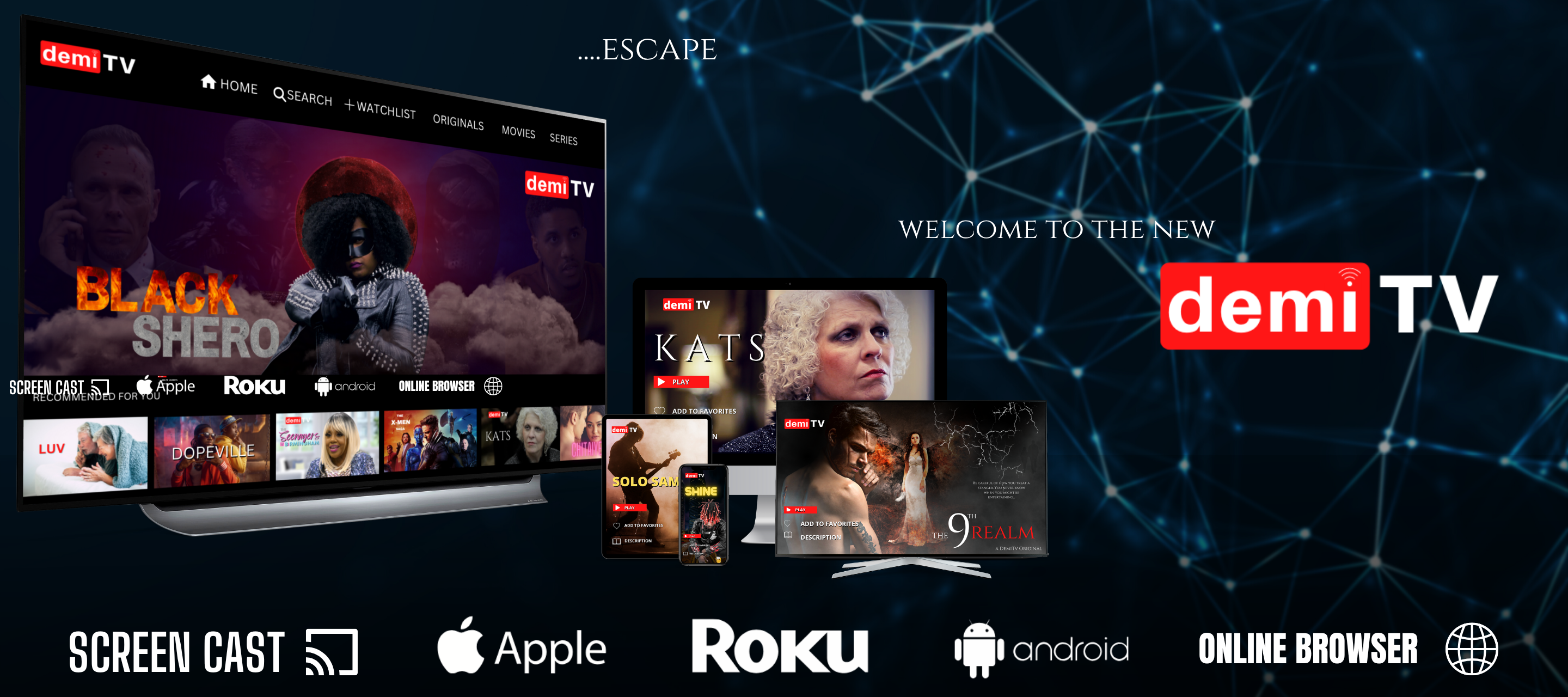 Watch DemiTv on Apple Tv, Roku, FireTv, Android Tv, Google Tv, not to mention Android and Apple devices, and even in their online browser.